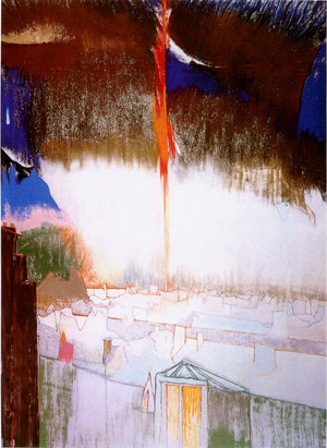 ペトリンは、シカゴのポーランド系ユダヤ人一家に生まれ、シカゴ・アート・インスティテュート、エール大学に学び、バウハウスのマイスターであったジョーゼフ・アルバースにも師事。この10年、20世紀ヨーロッパを代表するパウル・ツェランらの詩をもとに連作を展開し、独特の詩的な作品を生みだしている。不条理かつ過酷なホロコーストという冷厳な事実を避けては通れないユダヤ人の目からみた過去、現在の交錯する世界観が、パステルや油彩で、時には霞のごとく、あるいは色鮮やかに描かれている。